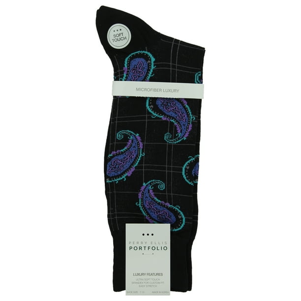 Perry Ellis Men S Ultra Soft Microfiber Luxury Crew Dress Sock Black Paisley 7 12 Walmart Com